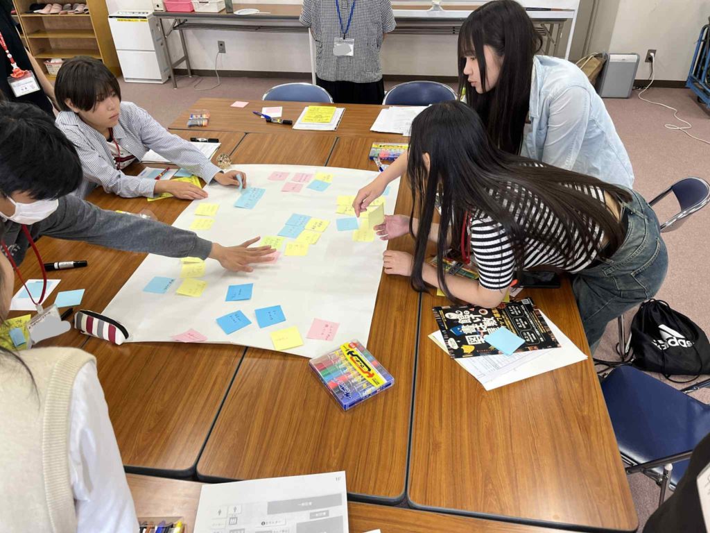 そして、貼り終えた付箋をグルーピング。似た意見や同じ方向性のアイデアをまとめていく作業になると——さすが高校生。