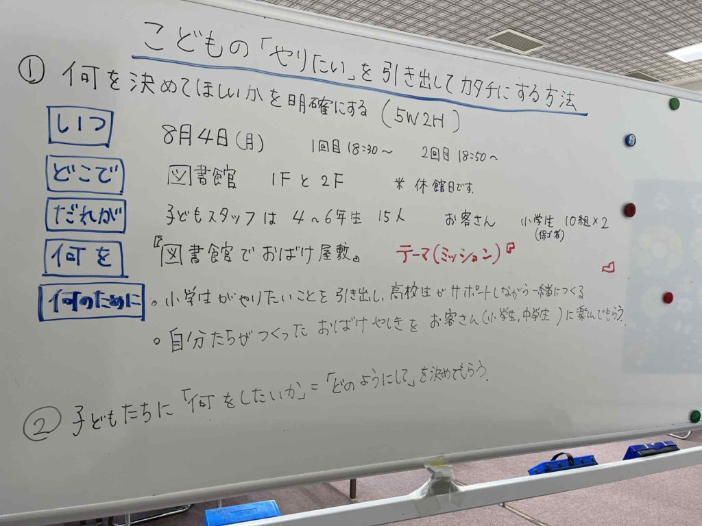 この日は、夏に予定されているワークショップ「図書館おばけ屋敷」に向けて、高校生ボランティアたちが集まり、企画を練る時間。